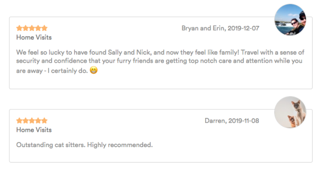 Each profile contains important information about the pet sitter, such as their prior knowledge, training and experience. You can also read reviews from other pet owners, and check statistics on how active a sitter is and how quickly they respond to messages.
